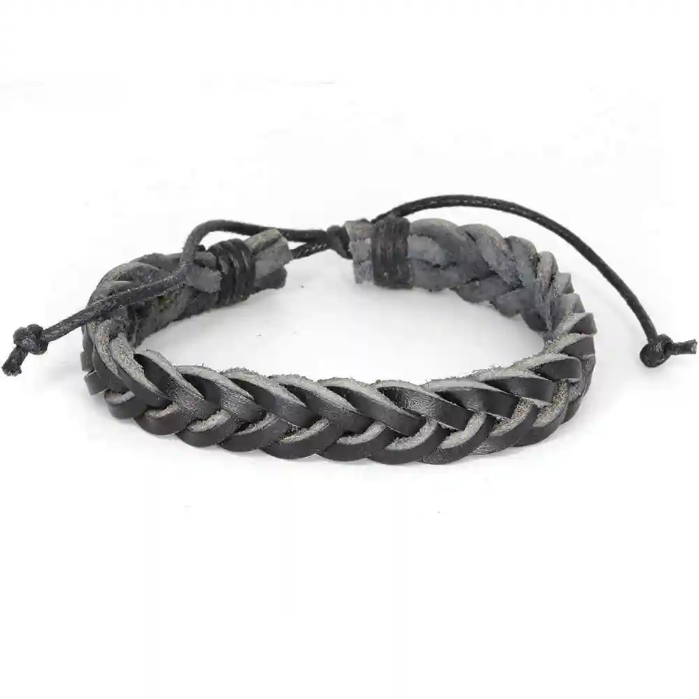 Dette armbåndsettet for menn består av to matchende armbånd, som sammen skaper et røft og stilrent uttrykk. Settet kombinerer et flettet lærarmbånd i grå/svart finish med et perlearmbånd med matte svarte perler og detaljer i stål og gyldne nyanser.