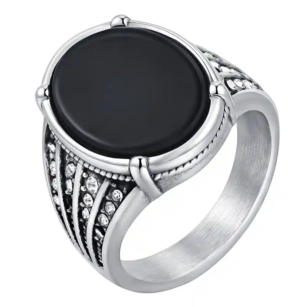 Black Agate Power Ring – Rustfritt Stål Herrering