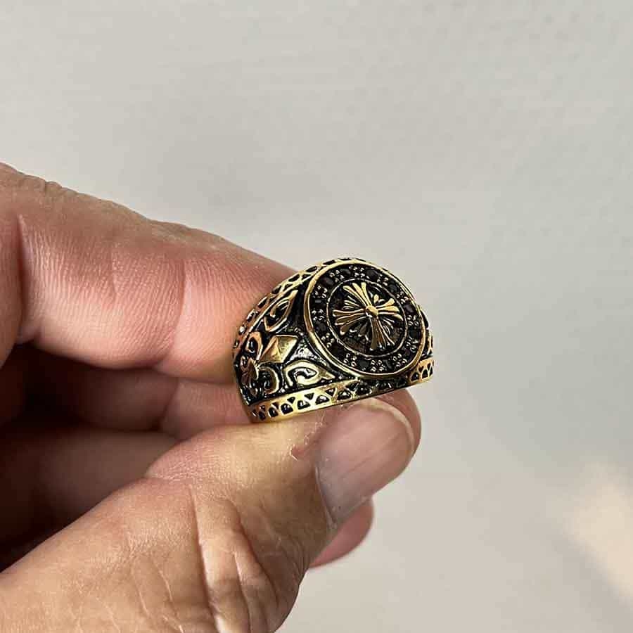 Denne sirkulære keltiske kors-forgylte stålringen er en lekker herre ring, som er laget av rustfritt stål med et vakkert keltisk design.