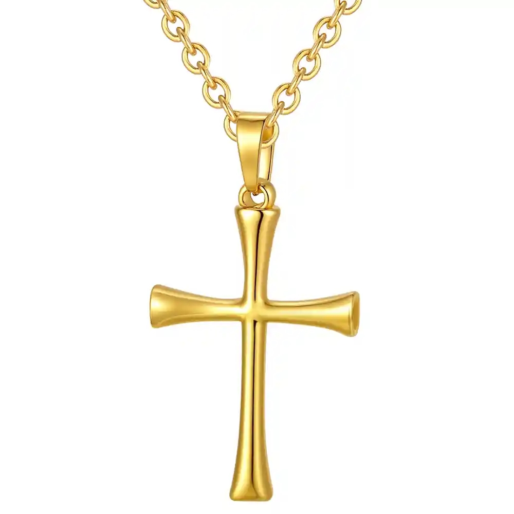 Golden Faith kors halssmykke rustfritt stålGolden Faith kors halssmykke rustfritt stålGolden Faith kors halssmykke rustfritt stål