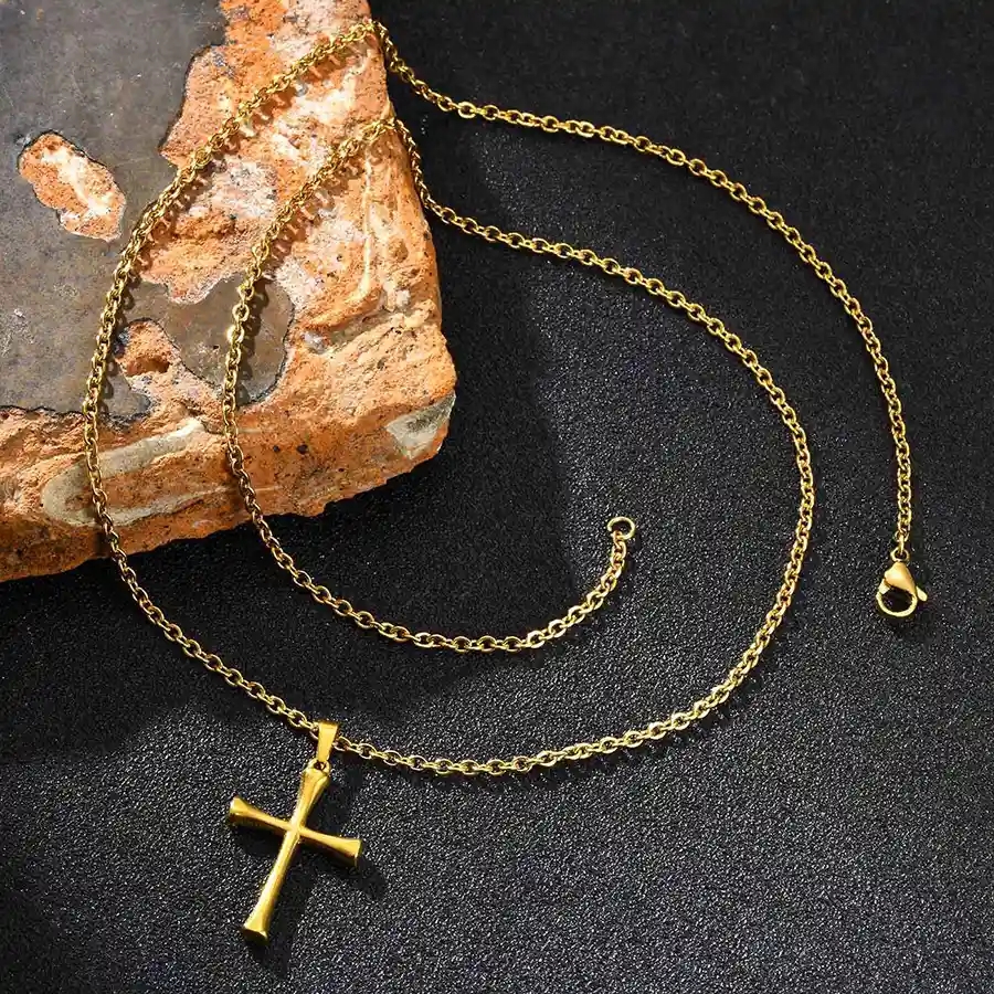 Golden Faith Cross Necklace er et maskulint halssmykke i rustfritt stål med elegant gullfarget finish.