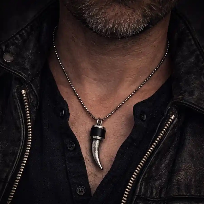 "Chapo"-halskjedet frå Marjoe er eit røft og maskulint halskjede til menn med eit markant tannforma anheng. Det kraftfulle designet gir smykket eit robust og maskulint uttrykk, som passar perfekt til menn med ein sterk og moderne stil.