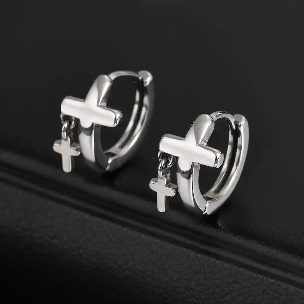 Gi ditt look et kult og moderne uttrykk med denne Double Cross Hoop, en stilren herreørering i rustfritt stål med både et fast og et lite dinglende kors. Kombinasjonen av de to korsene gir et markant, urbant og maskulint uttrykk, som passer perfekt til menn som vil skille seg ut uten å overdrive det.