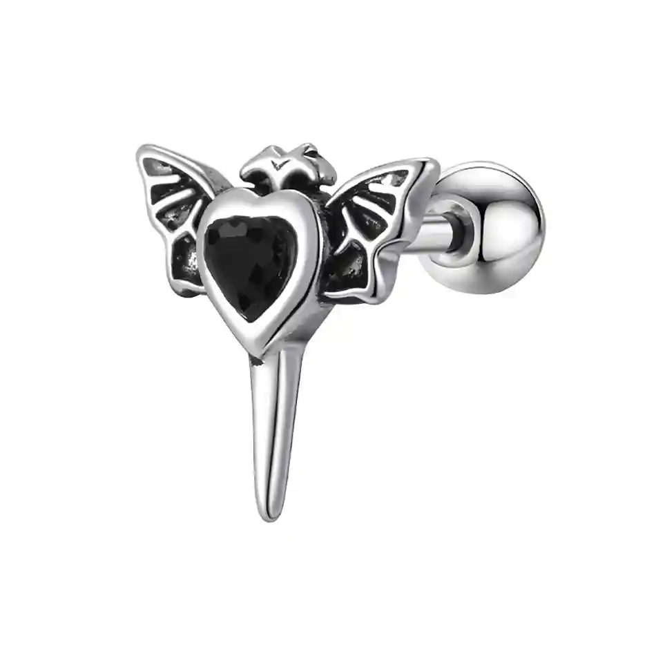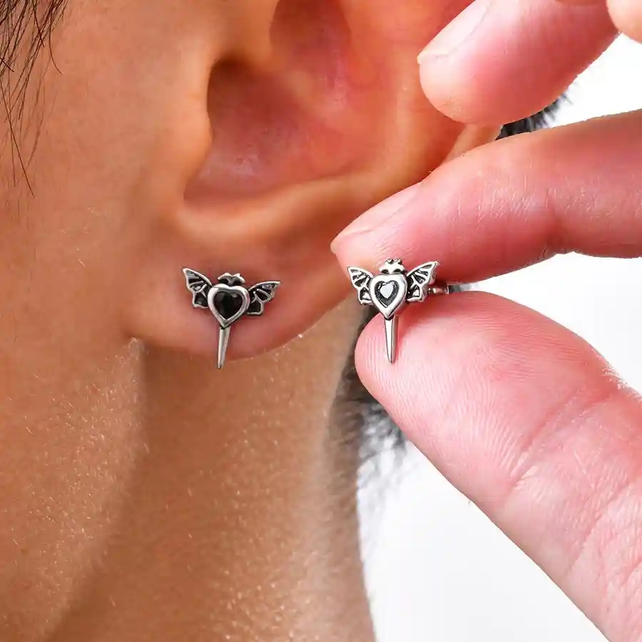 Mørk Wing Heart – Herre Ørestikk i Rustfritt Stål