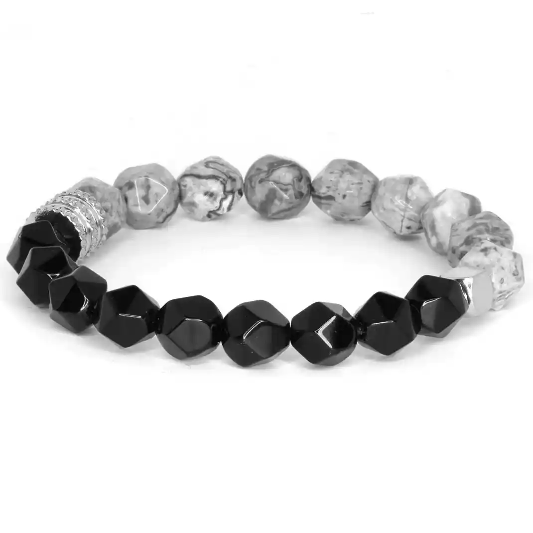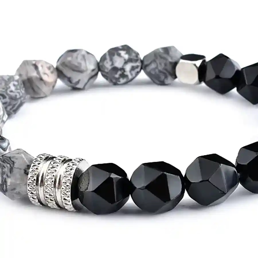 Nordic Balance perlearmbånd til menn med 10 mm fasetterte agat- og lapisperler.