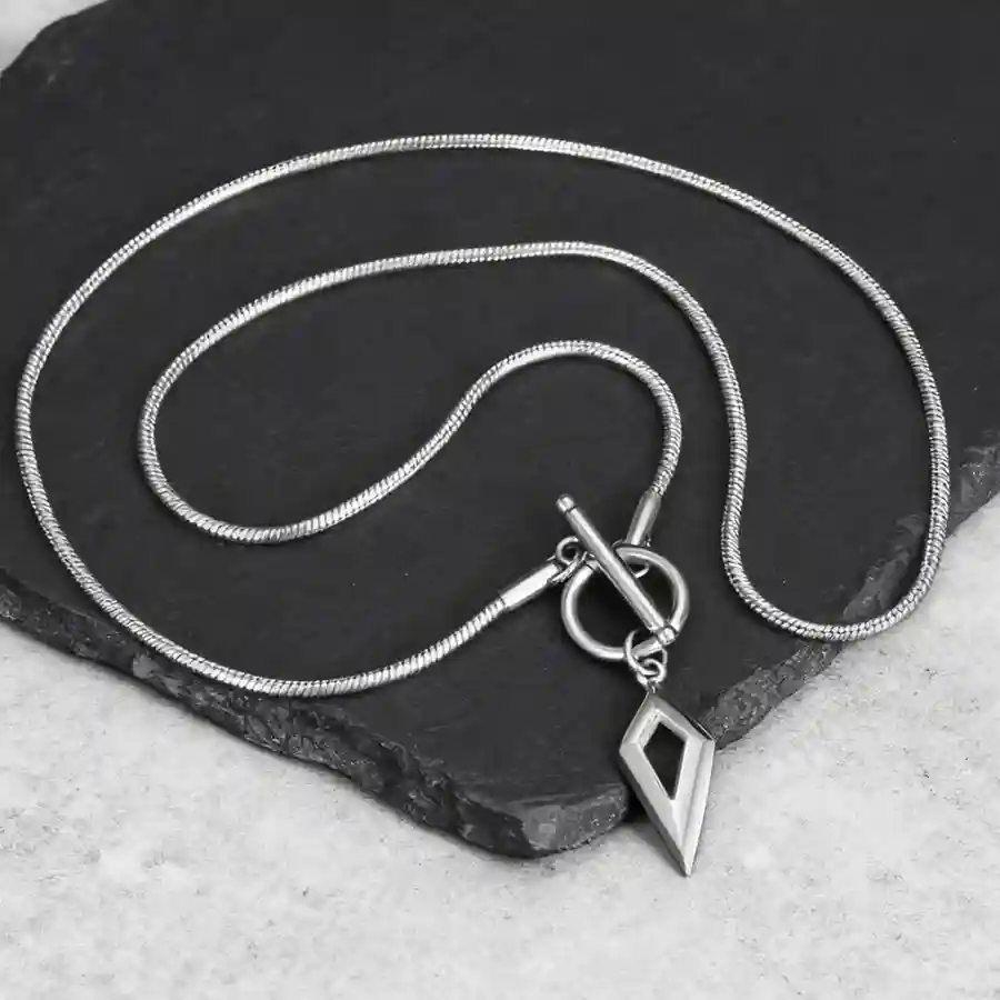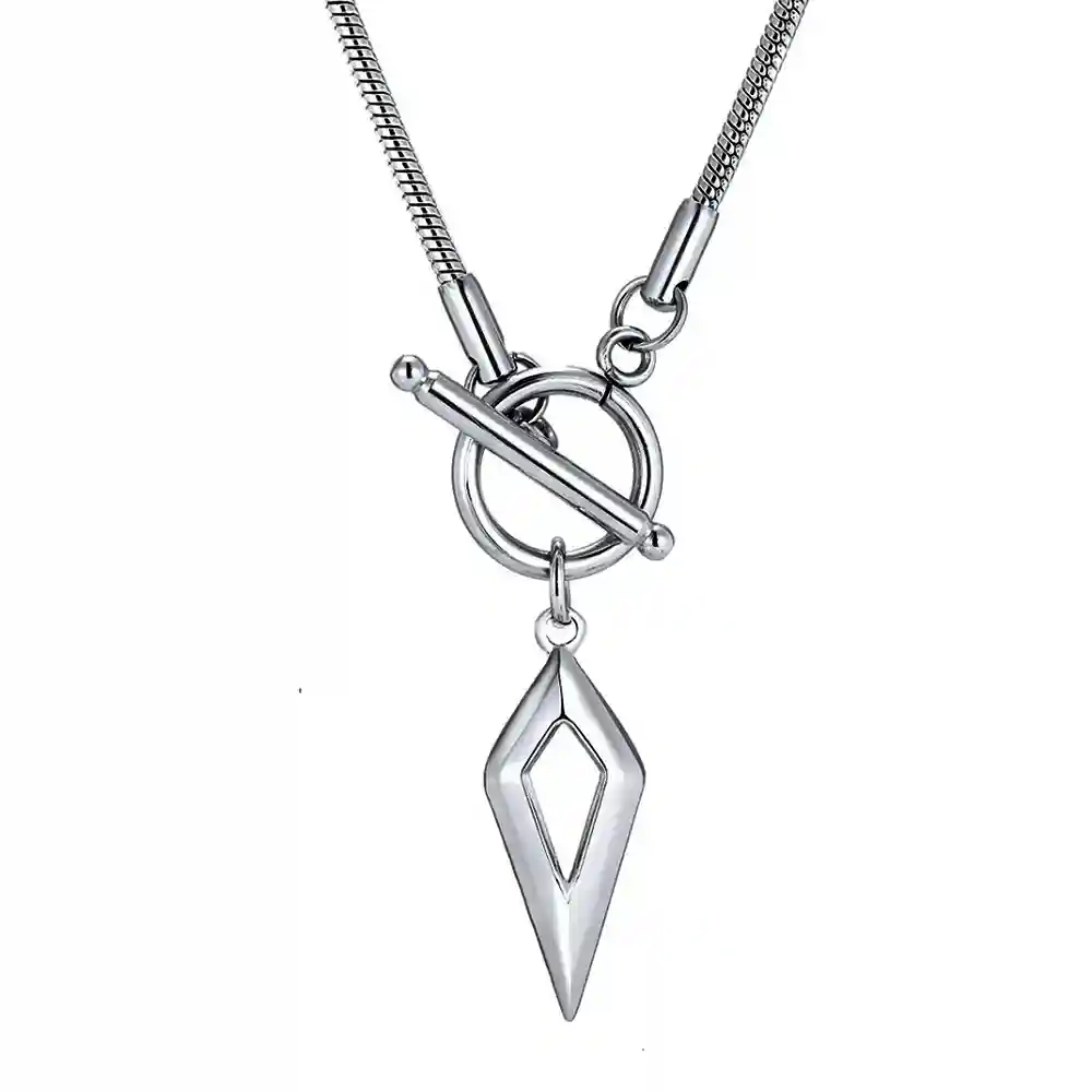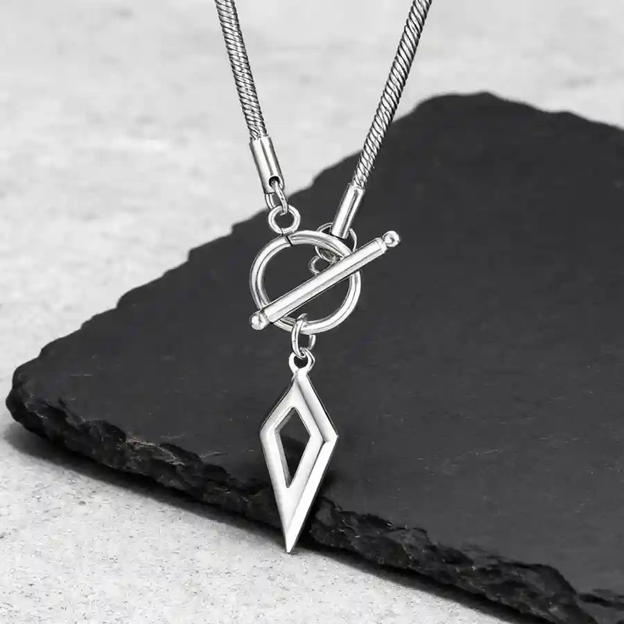 Halskjedet er laga i rustfritt stål, noko som gjer det både slitesterkt og motstandsdyktig mot dagleg bruk. Den elegante ståloverflata gir eit reint og tidlaust look, som gjer halskjedet lett å kombinere med både casual og meir stilfulle antrekk.