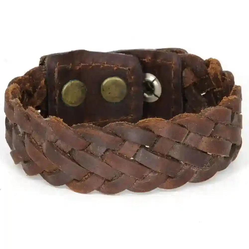 Flettet lærarmbånd til menn i brun ekte lær – Rustic Braid