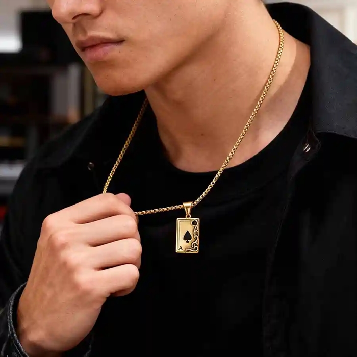 Gullbelagt halskjede i rustfritt stål med Spar Es-motiv.