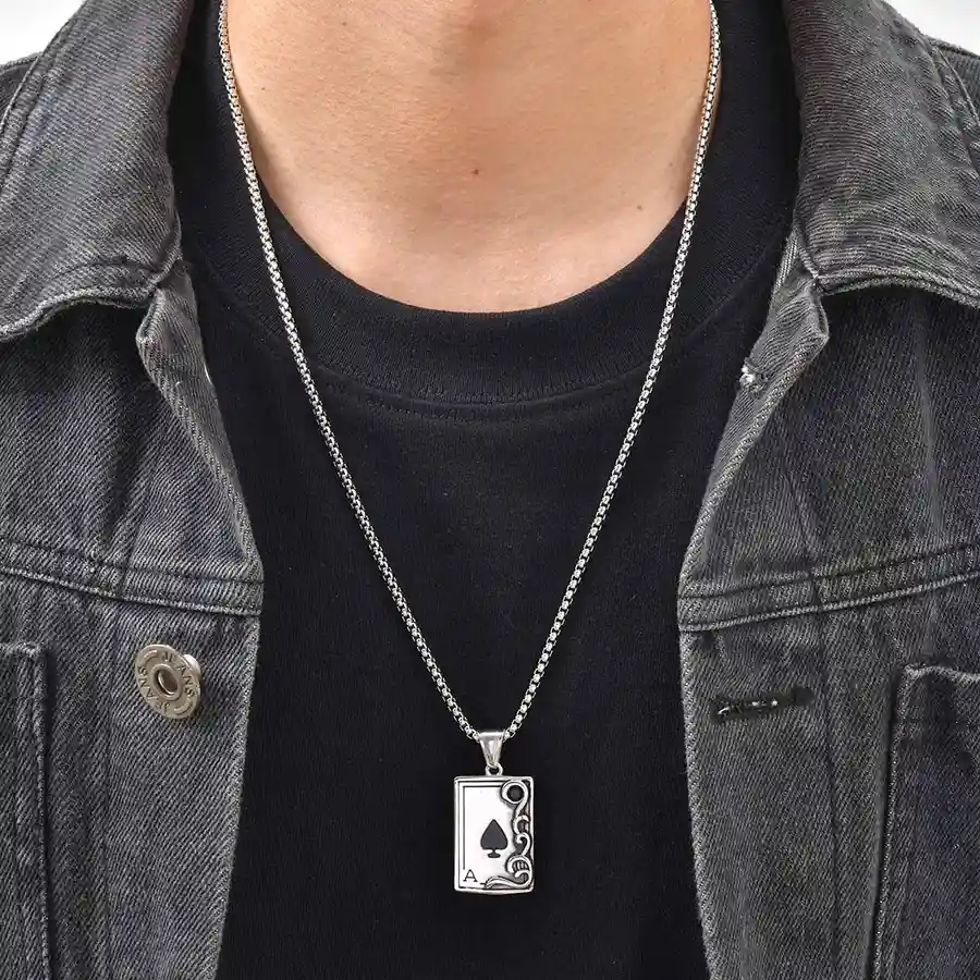 Rustfritt stål old school halskjede med Spar Es motiv.