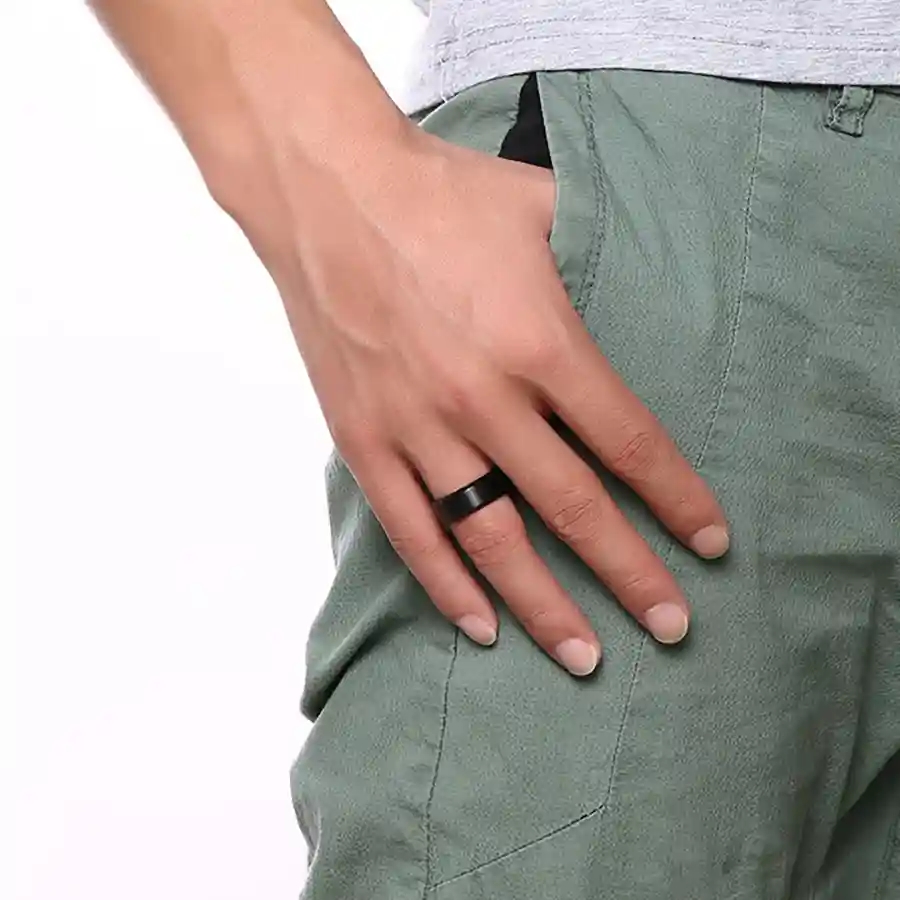 Denne svarte titanringen for menn er et sikkert valg for deg som ønsker et moderne, tidløst og diskret kraftfullt herresmykke.